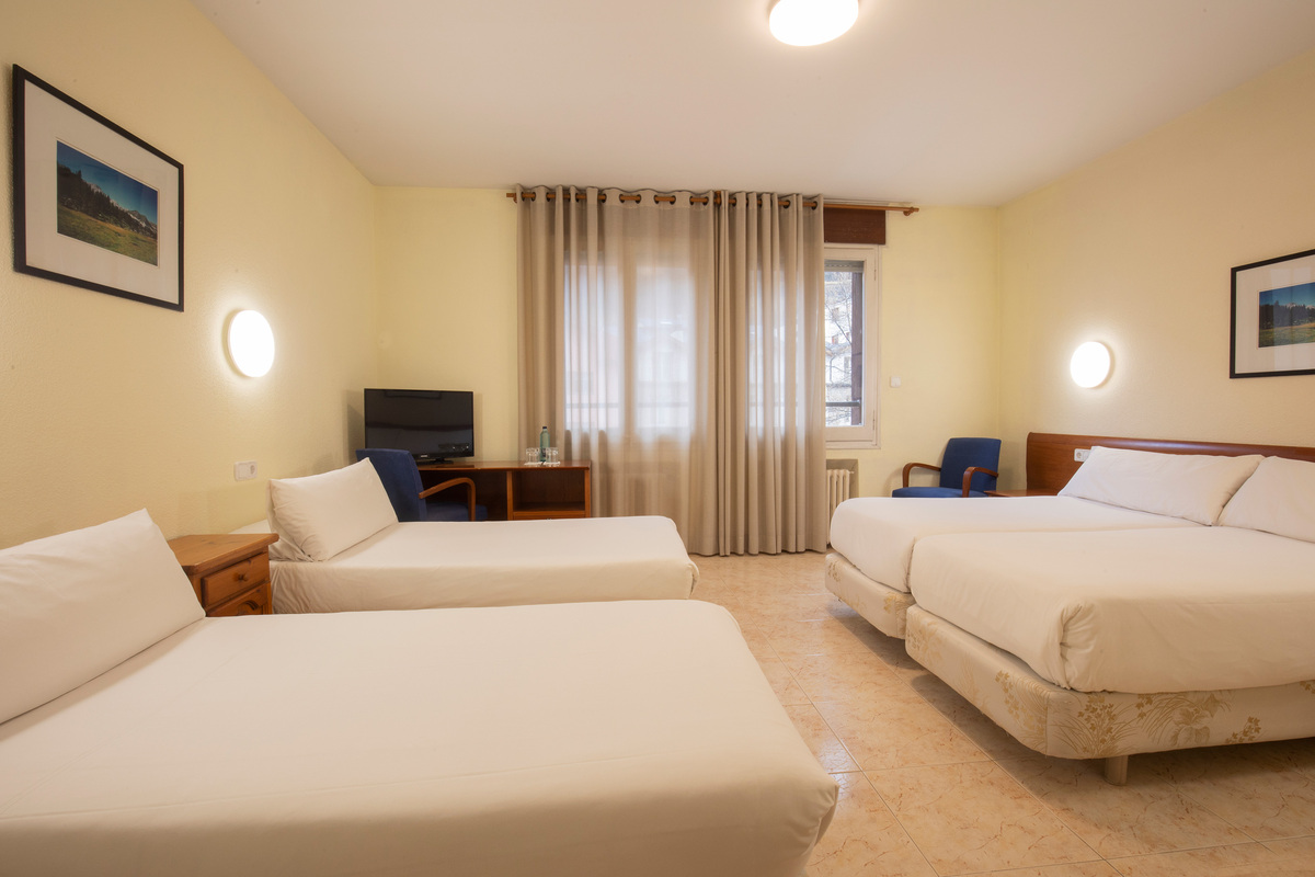 Hotel: Consta de 66 habitaciones exteriores equipadas con baño completo, secador de pelo, TV, caja fuerte, teléfono directo y WiFi. Las habitaciones son exteriores, con vistas o bien a la montaña o bien al pueblo de Encamp.