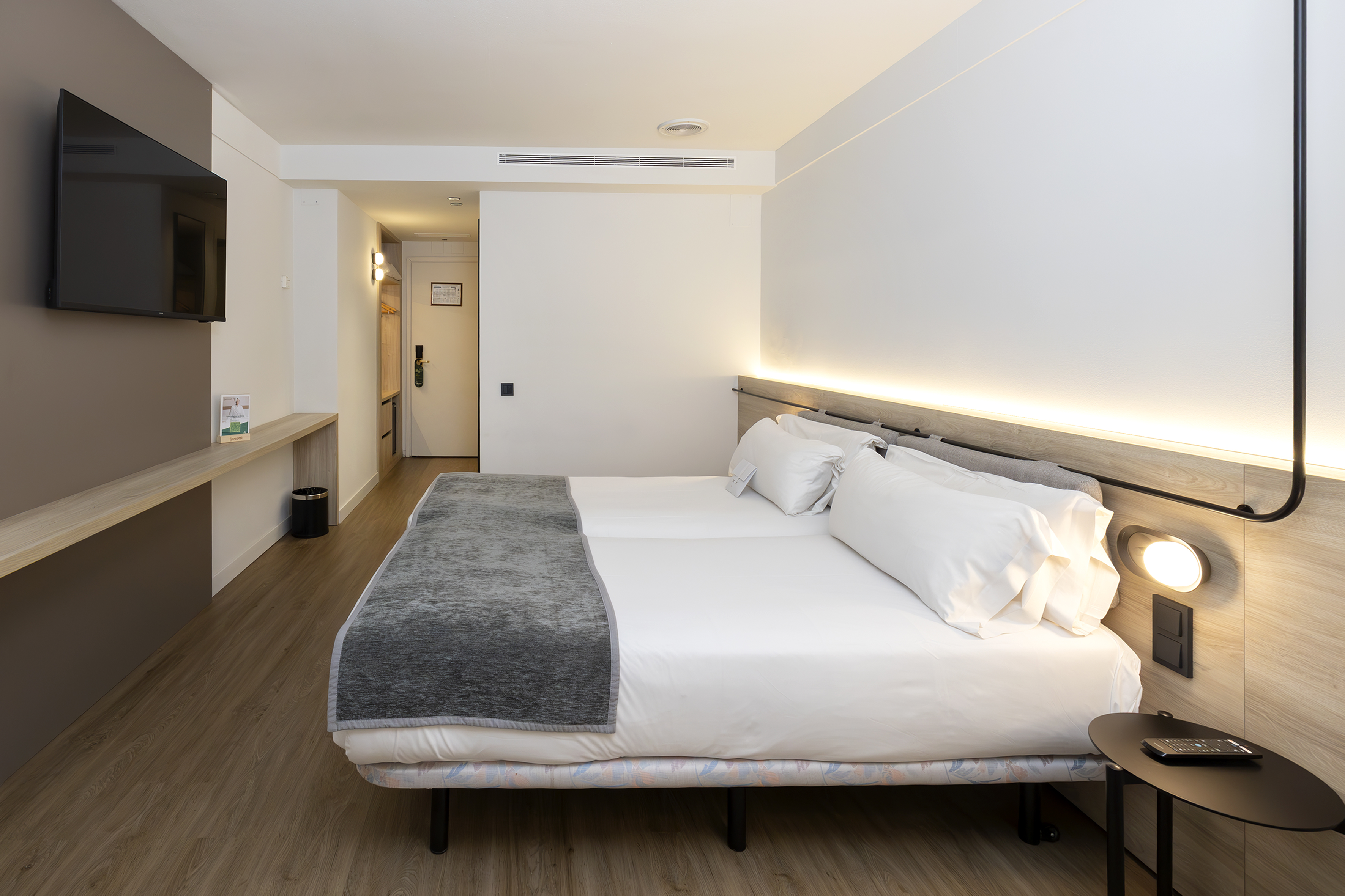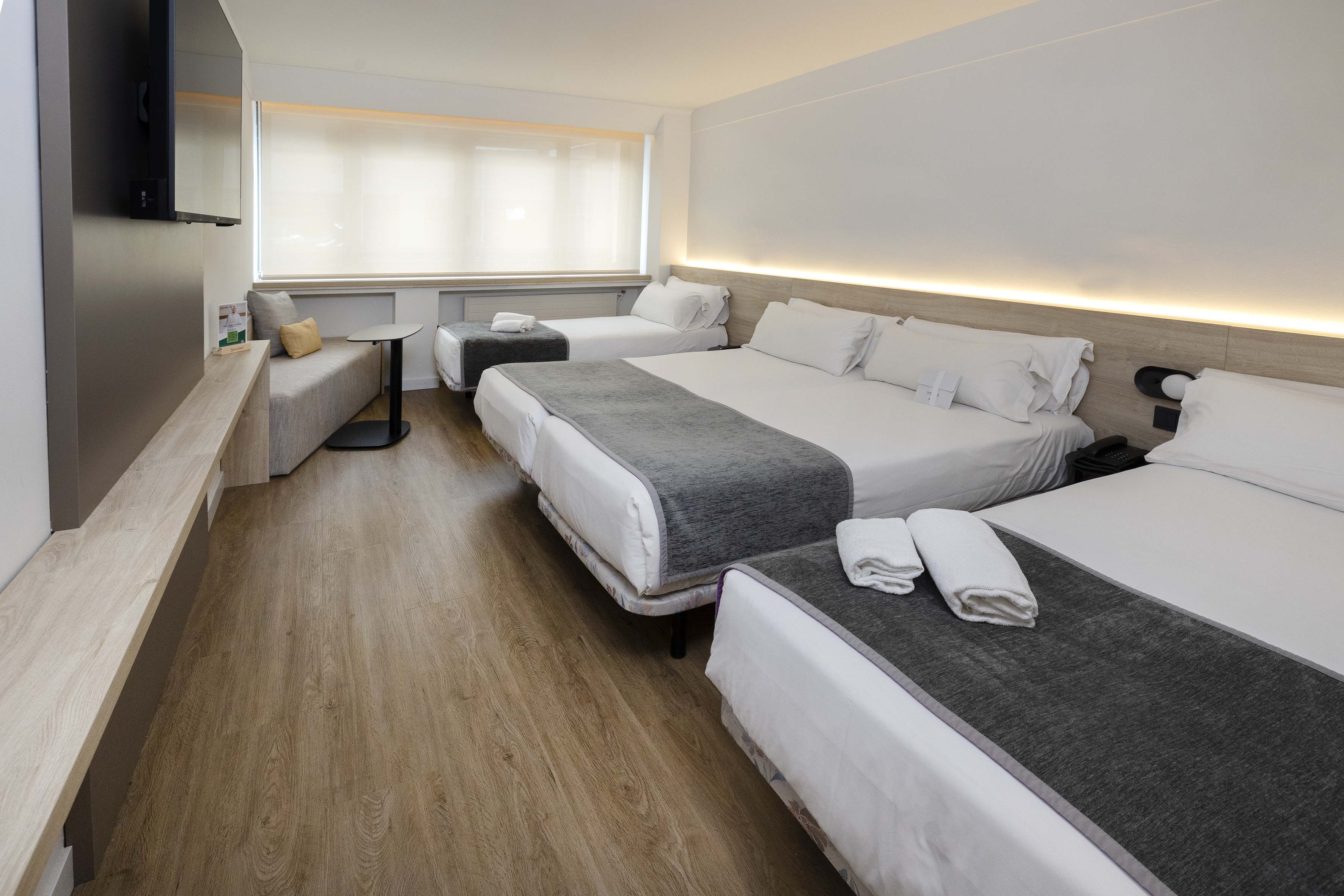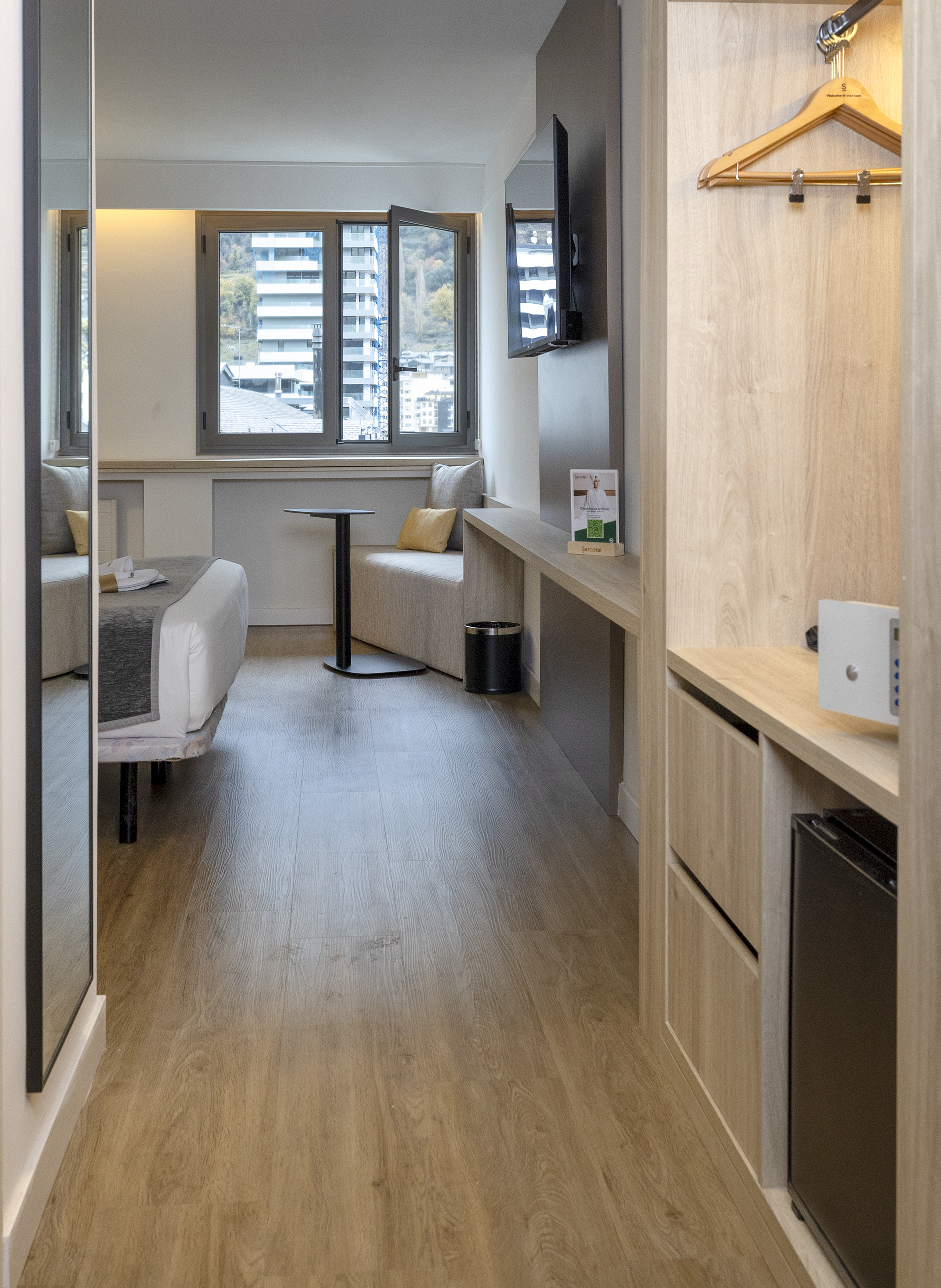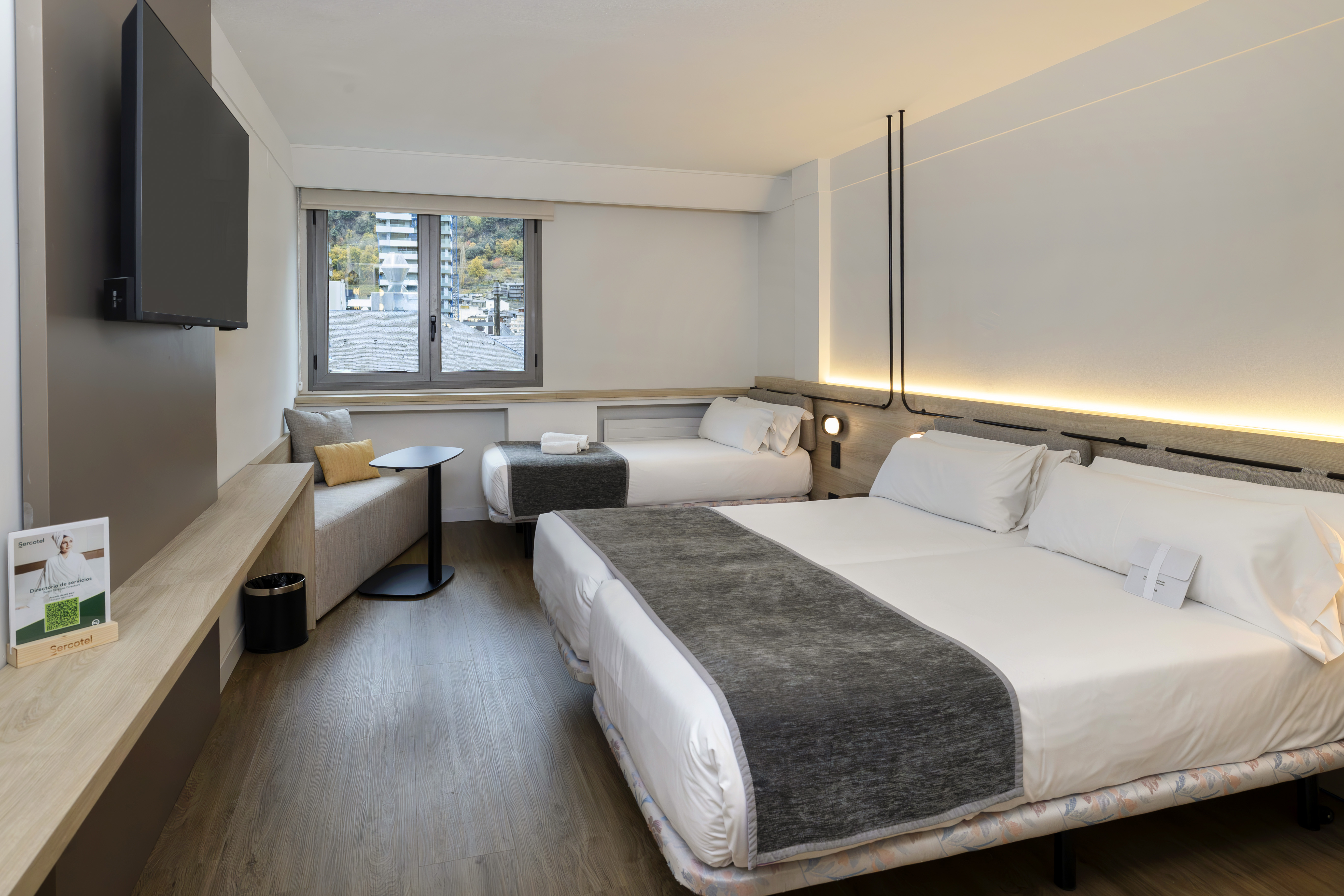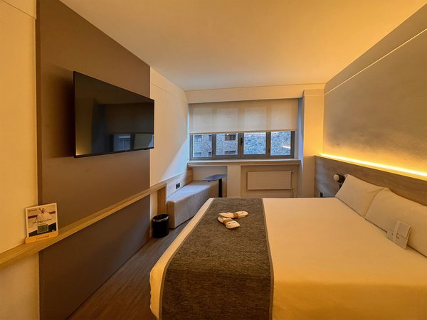 Dispone de habitaciones de hasta cuatro personas, perfecta para familias o grupos de amigos que quieren alojarse en una misma habitación, con una muy buena relación calidad-precio y situado en el centro de Andorra. Todas las habitaciones son espaciosas, con un estilo clásico, pero renovadas en un estilo más contemporáneo. Todas exteriores y luminosas, y tienen entre 12 y 18 metros cuadrados y capacidad máxima de 1 a 4 personas. Las habitaciones incluyen: TV con canales vía satélite, minibar, caja fuerte, teléfono directo, Wi-Fi gratuito, aire acondicionado con control individual.