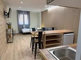 El complejo de Apartamentos SKY 3000 cuenta principalmente con estudios con capacidades de 2 a 5 plazas. Estos estudios no disponen de dormitorio independiente, sino que el salón hace la función también de comedor.